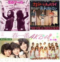 (右上)フォーククルセイダーズ、(左下)キャンディーズ、(右下)AKB48。