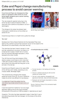 BBC記事3月10日の記事。コカコーラもペプシもアメリカ向けの対策は講じるも、ヨーロッパ向けには対策なし |