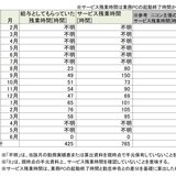 2024年1月の『勤務実績表』。PCの稼働実績と支払われた残業代との乖離時間がわかる。特に休日の労働時間が大きい。